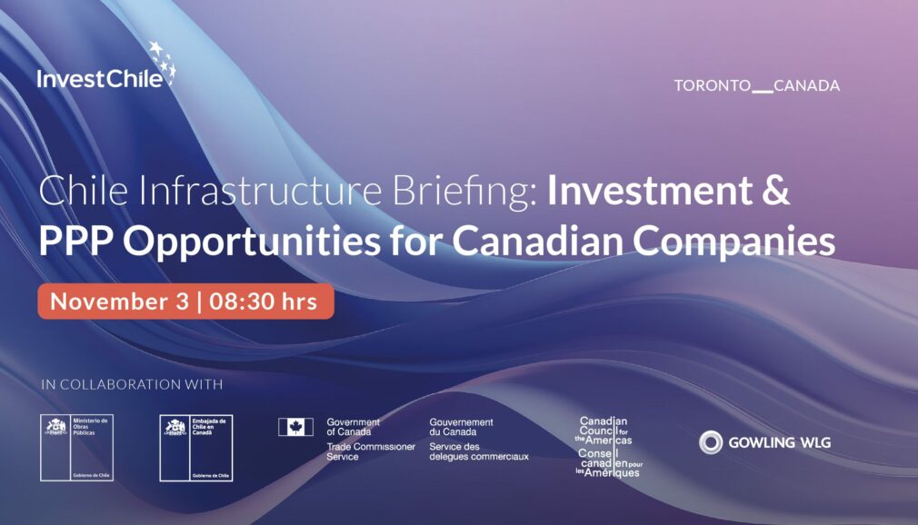 InvestChile and the Canadian Trade Commissioner Service are organizing an exclusive infrastructure and public-private partnership (PPP) investment briefing focused on Chile’s robust infrastructure pipeline and upcoming concession opportunities,