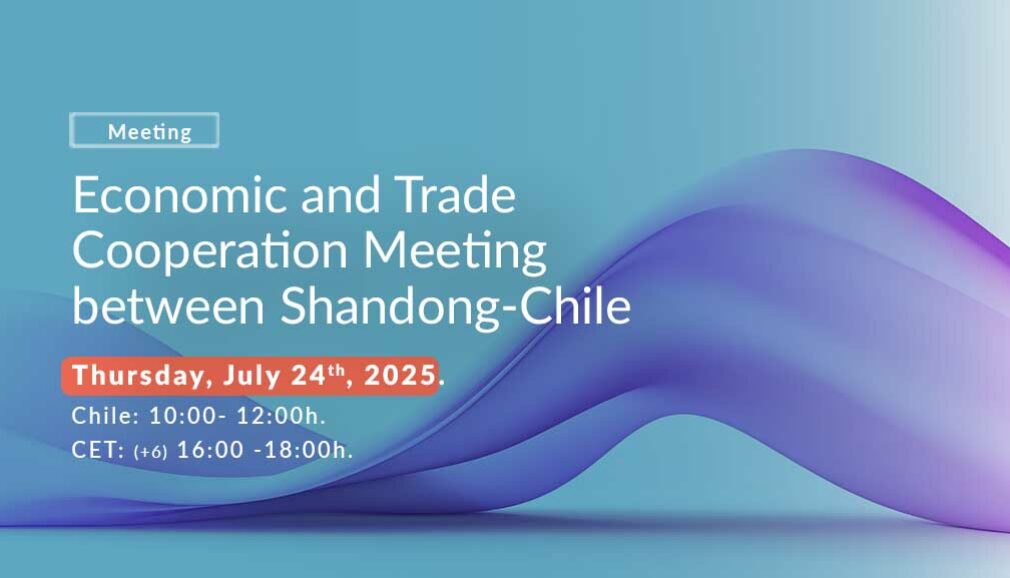 InvestChile is sponsoring the Economic and Trade Cooperation Meeting between Shandong (China) and Chile, which will take place on Thursday, July 24, 2025, from 10:00 AM to 12:00 PM in Santiago, Chile.